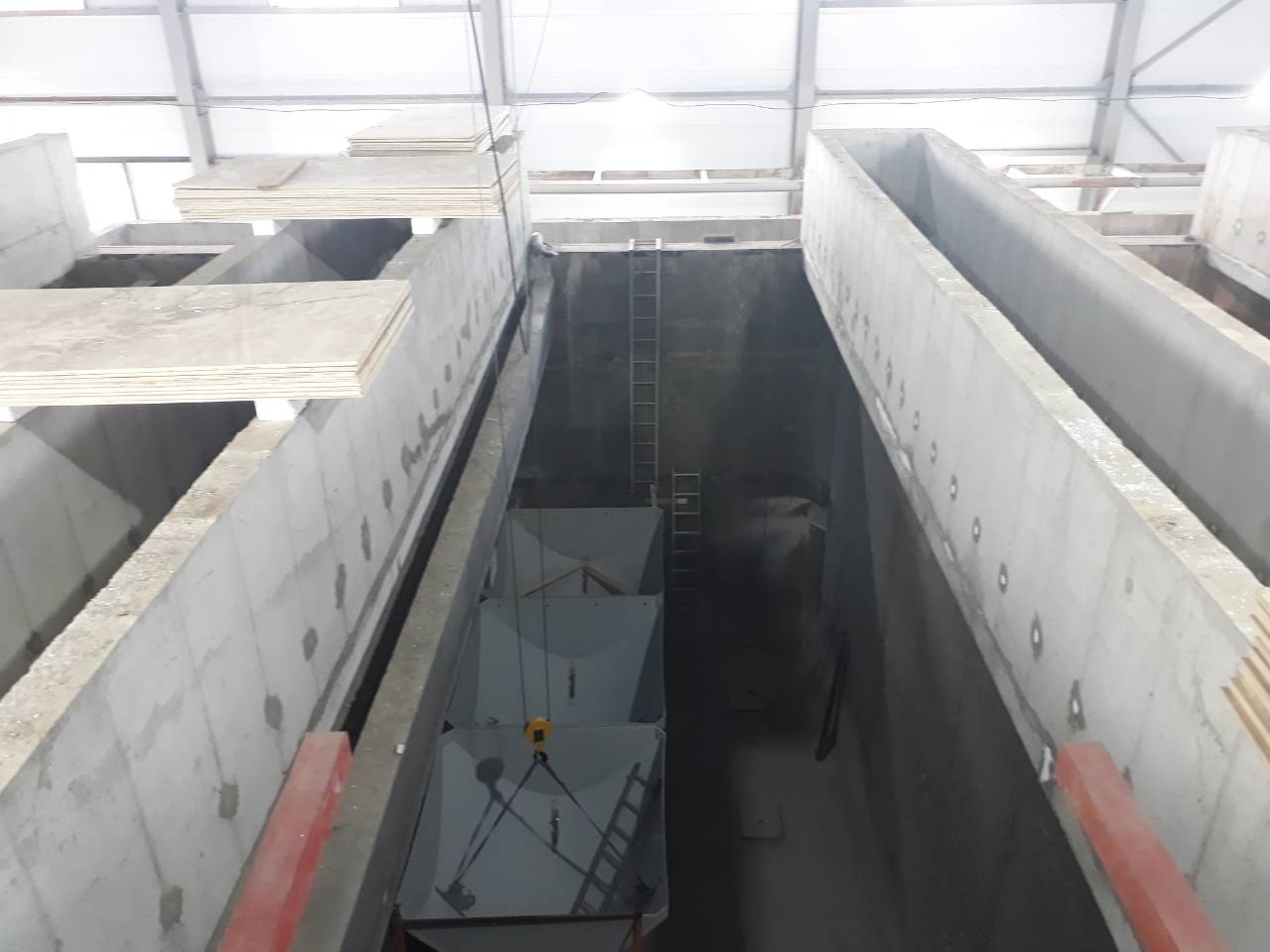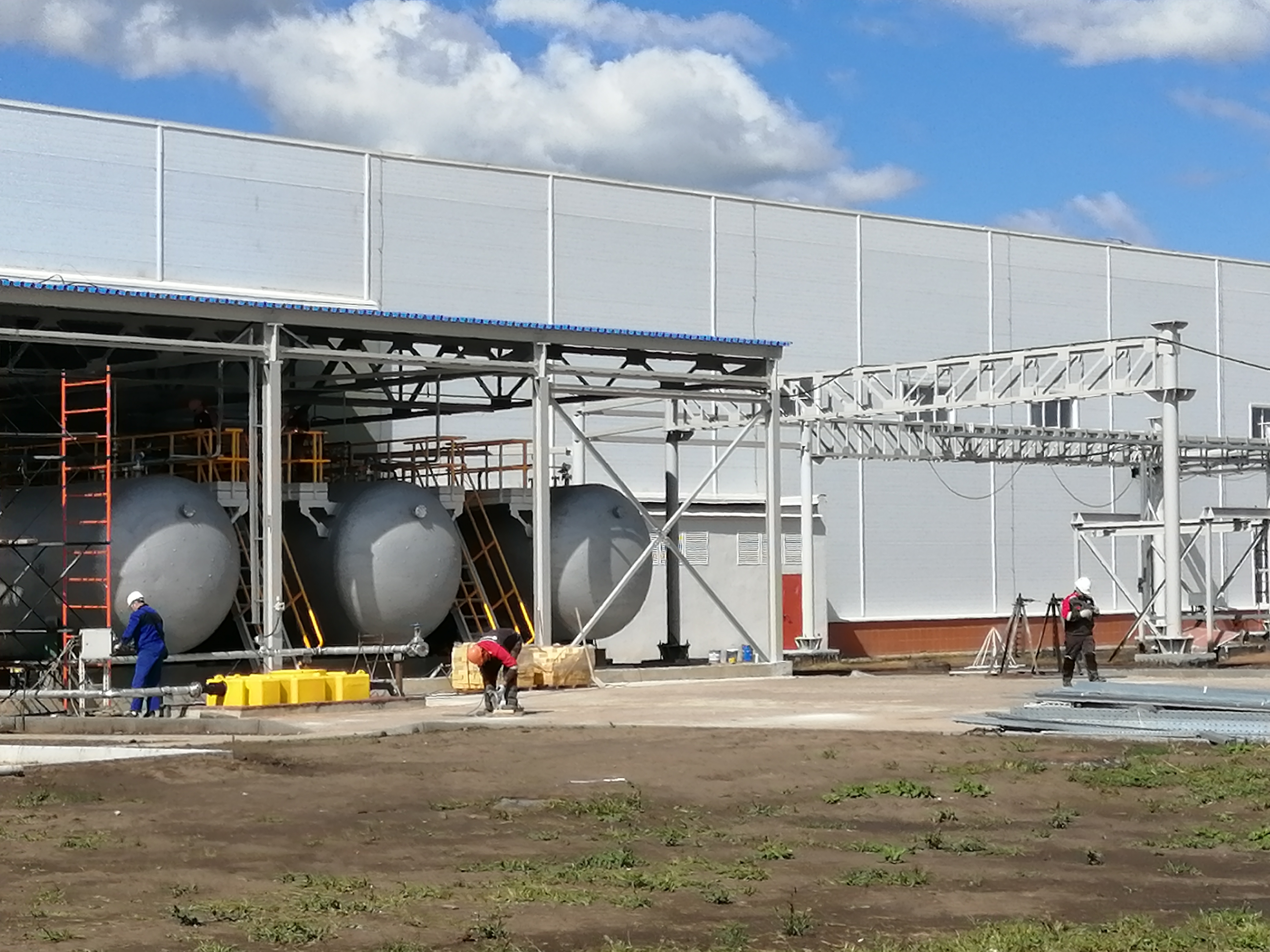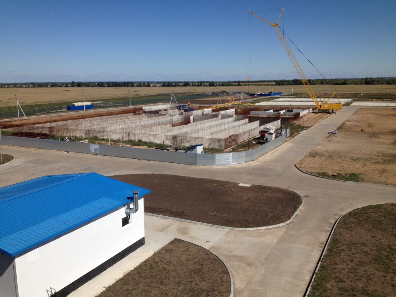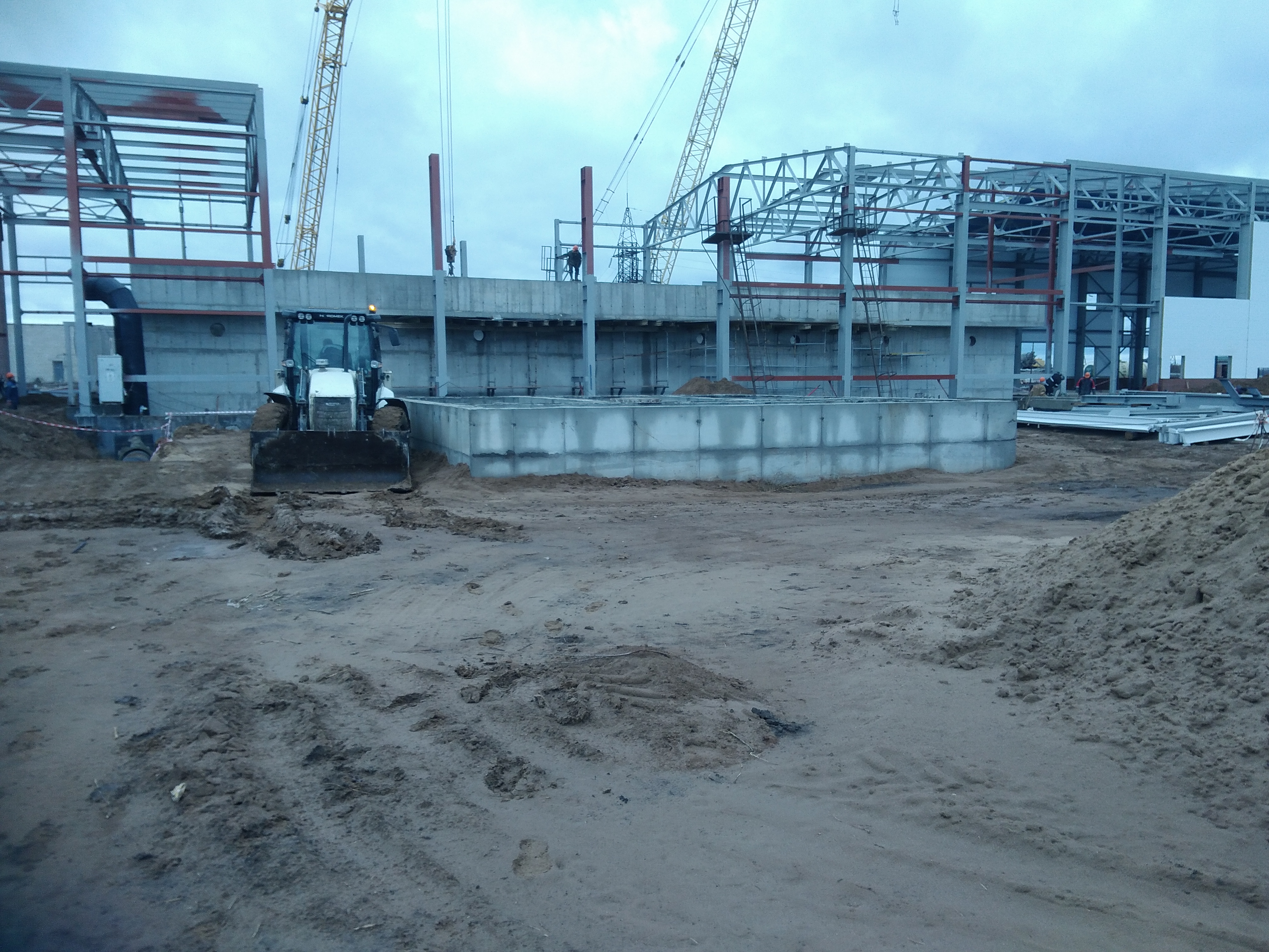На отведенной площадке произведено строительство производственных зданий, вспомогательных зданий, емкостных подземных сооружений, емкостных частично заглубленных открытых сооружений и площадок для складирования осадков.