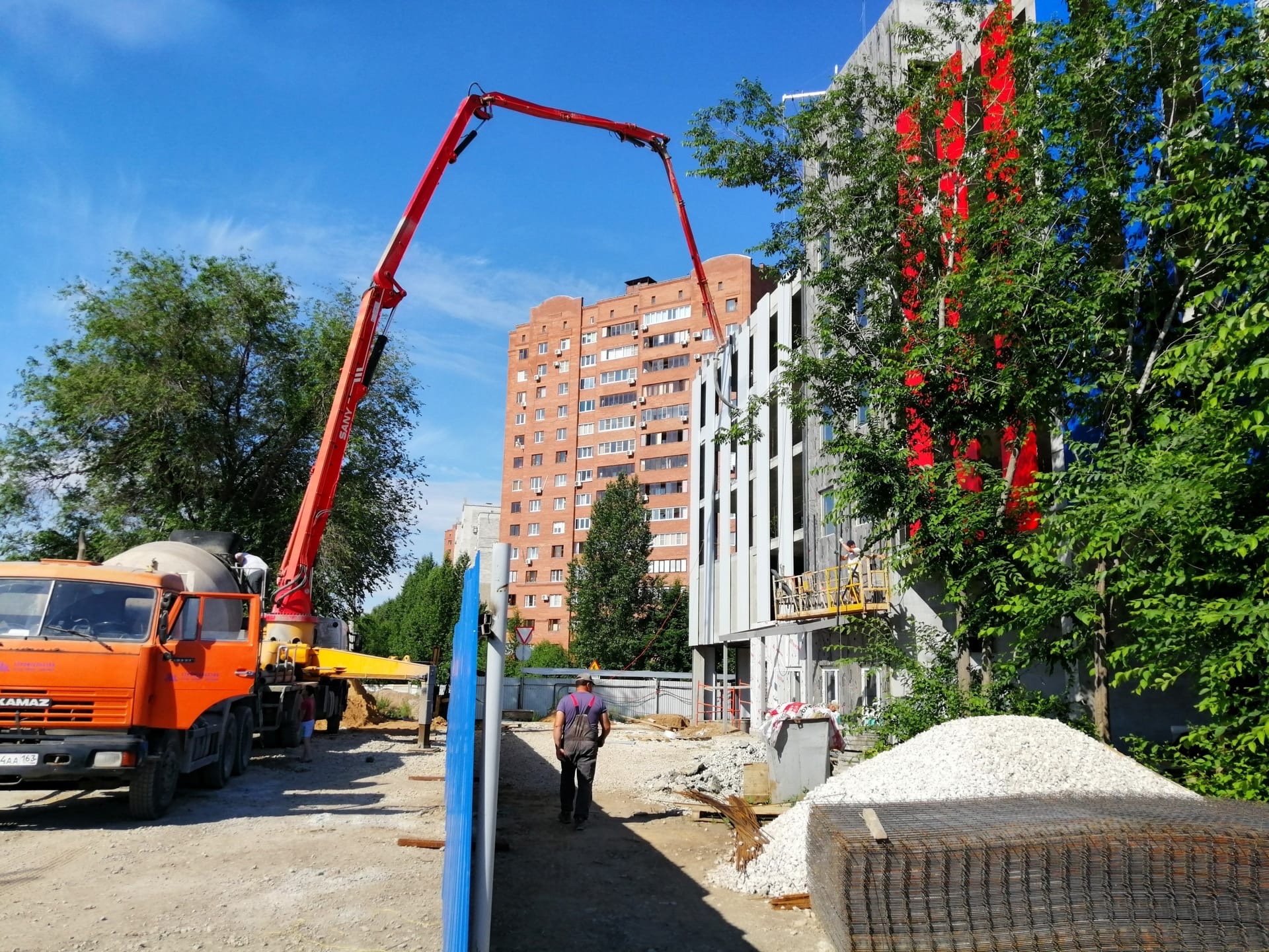 Проект Паркинг «Арлан Авто» - выполнение работ по заливке бетона автобетононасосом.